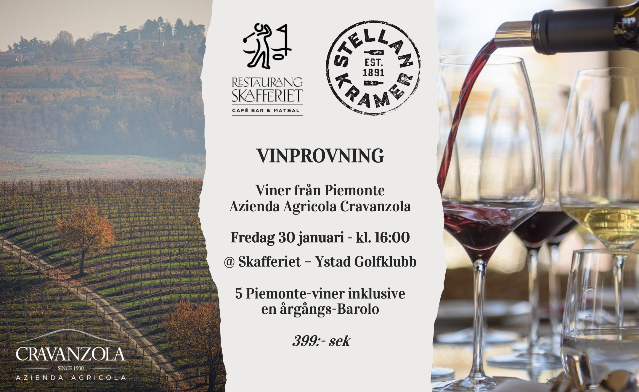 Dessutom lottar vi under evenemanget ut en flaska Barolo, som kan avnjutas vid ett kommande middagstillfälle på Skafferiet.